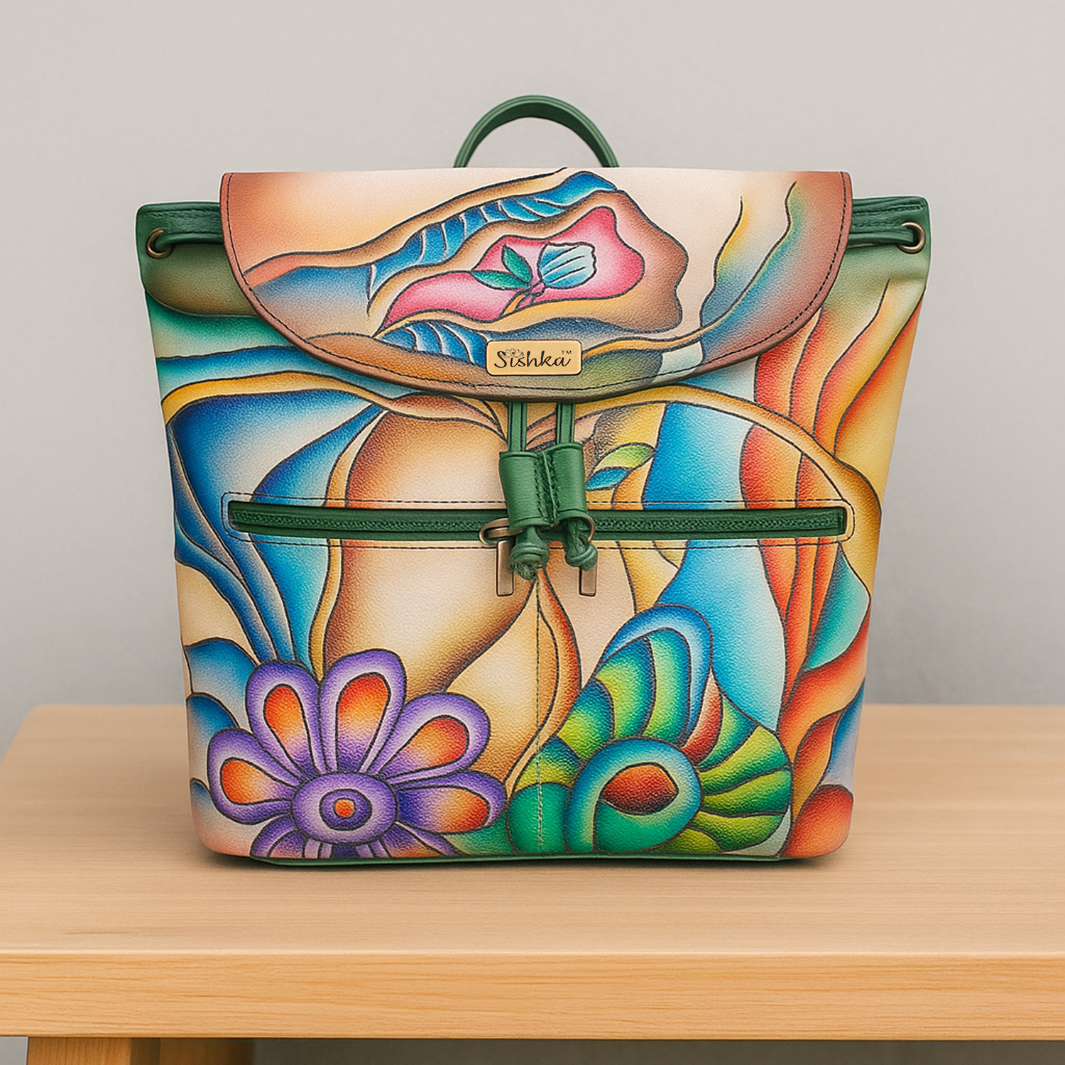 Hand-Painted Turquoise Triangle Backpack with Adjustable Straps